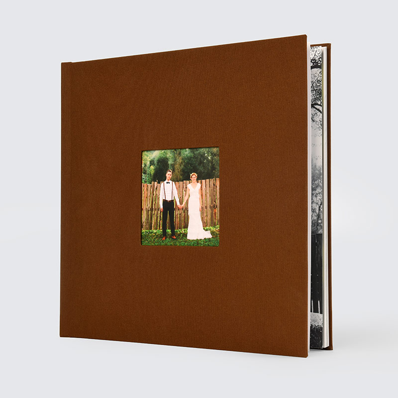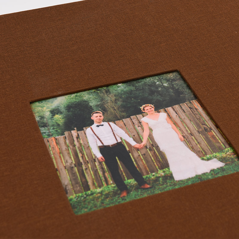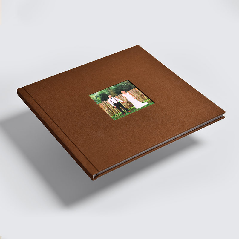 Platnica z okvirjem, ki je ročno izdelana, ima poglobljeno fotografijo velikosti 100 x 100 mm. Pri Pro foto knjigi je možna samo v kombinaciji z Duo platnico.