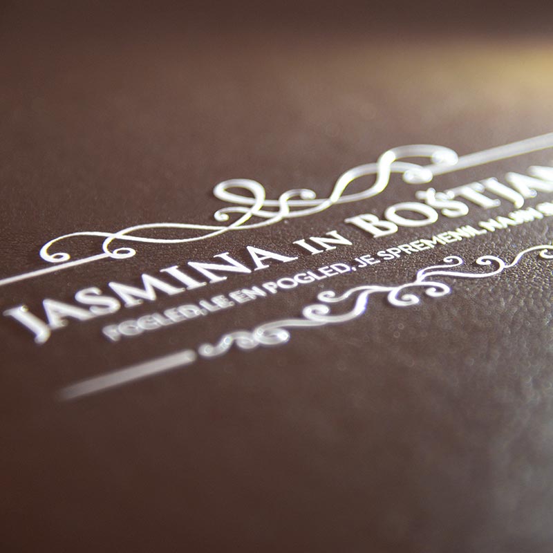 Posebna UV tehnologija z uporabo bele barve omogoča dotisk na platnice tudi v temnih materialih. Tako lahko oblikujete poljubne oblike, pisave in barve. Lak, kot dodatna možnost, bo dal vašim izdelkom poseben 3D videz. Svetujemo uporabo kontrastnih motivov glede na barvo izbrane platnice.