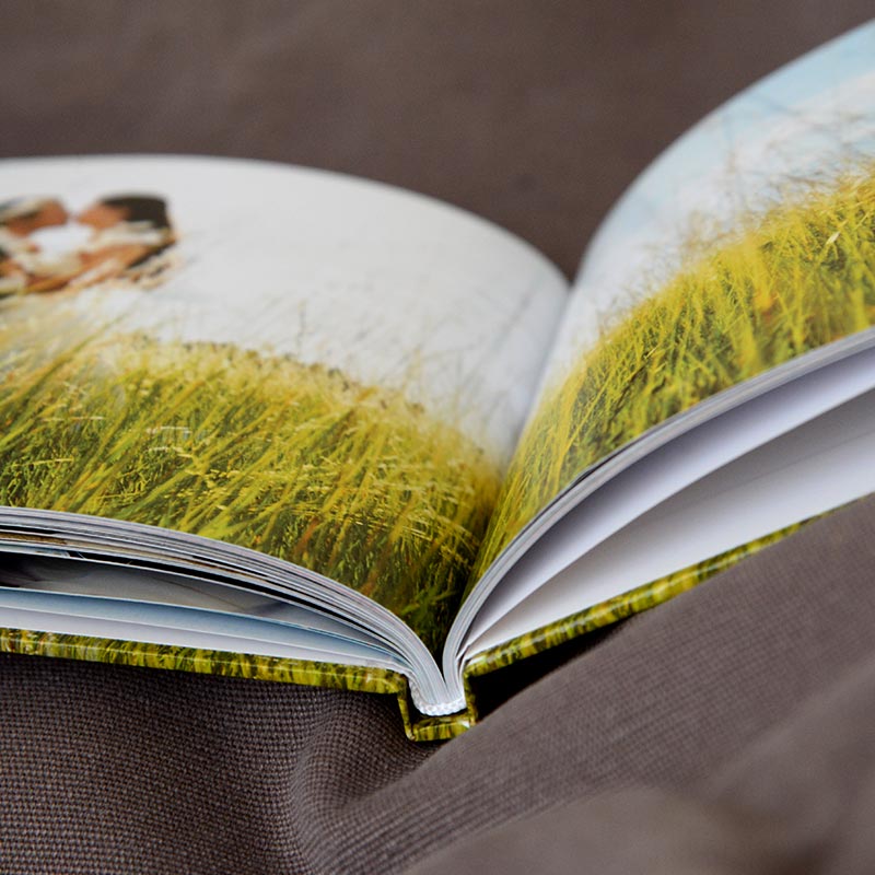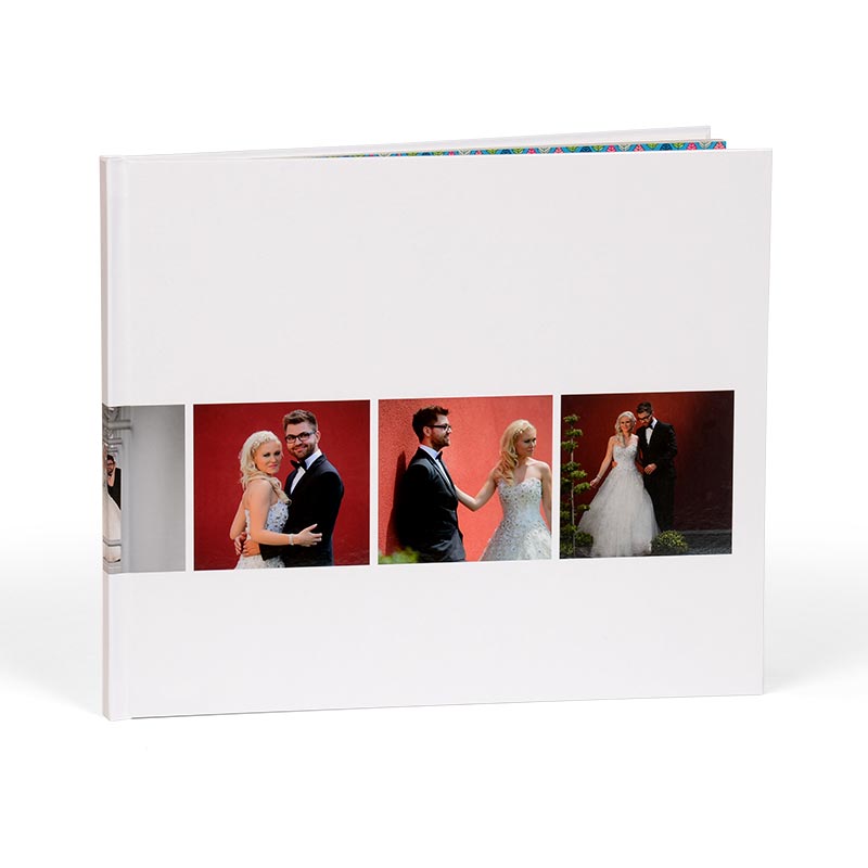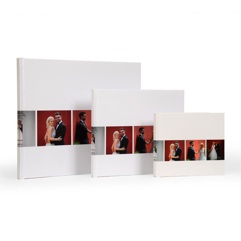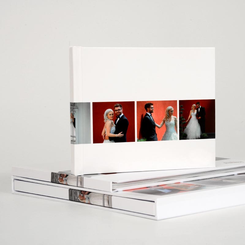 Premium knjiga s potiskanimi platnicami, in možnostjo velikega obsega strani, nudi svobodo pri oblikovanju. Premazni mat papir daje občutek kataloškega in modernega izdelka. Na voljo je v treh velikostih in tako primerna za kombiniranje v različne pakete. Uporabite predlogo in oblikujte celotno platnico z najljubšo fotografijo in posvetilom. Sijajna, matirana ali žametna plastifikacija ovitka zaščiti knjigo pred zunanjimi vplivi.