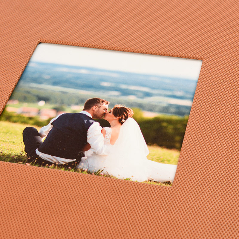 Platnica z okvirjem, ki je ročno izdelana, ima poglobljeno fotografijo velikosti 120 x 120 mm. Pri Pro foto knjigi je možna samo v kombinaciji z Duo platnico.