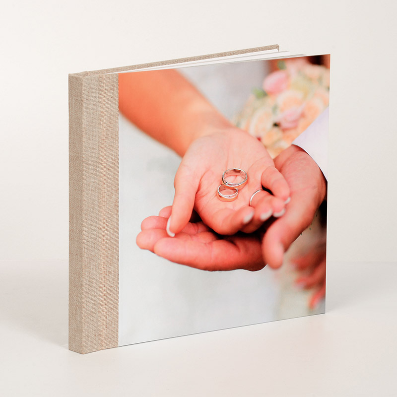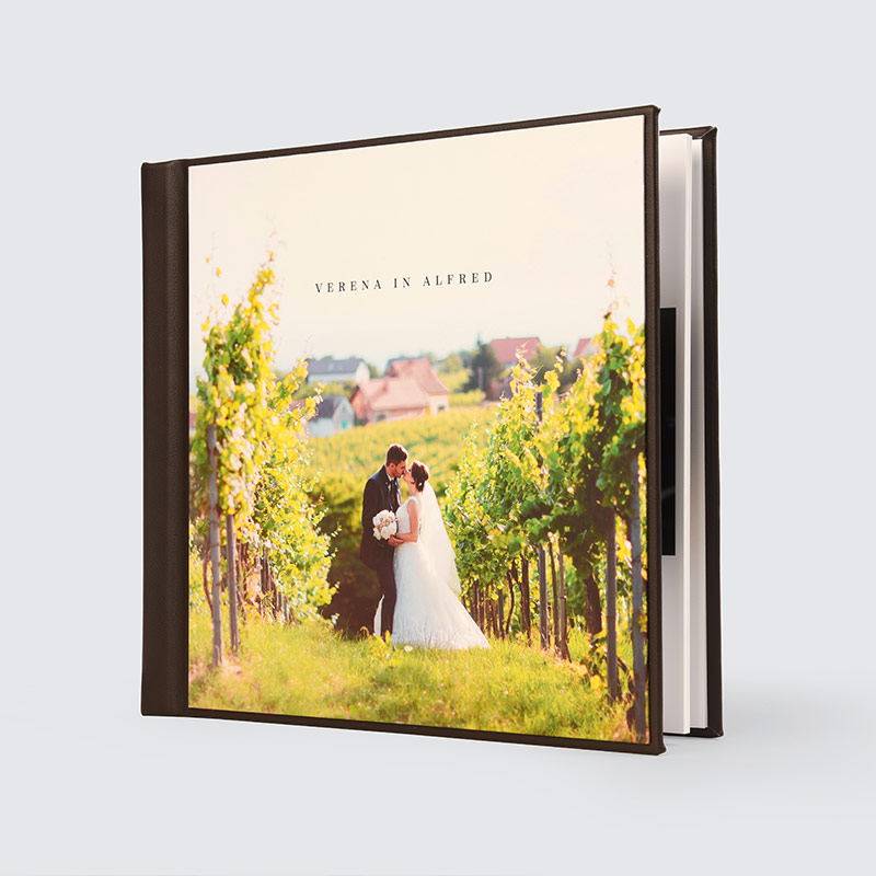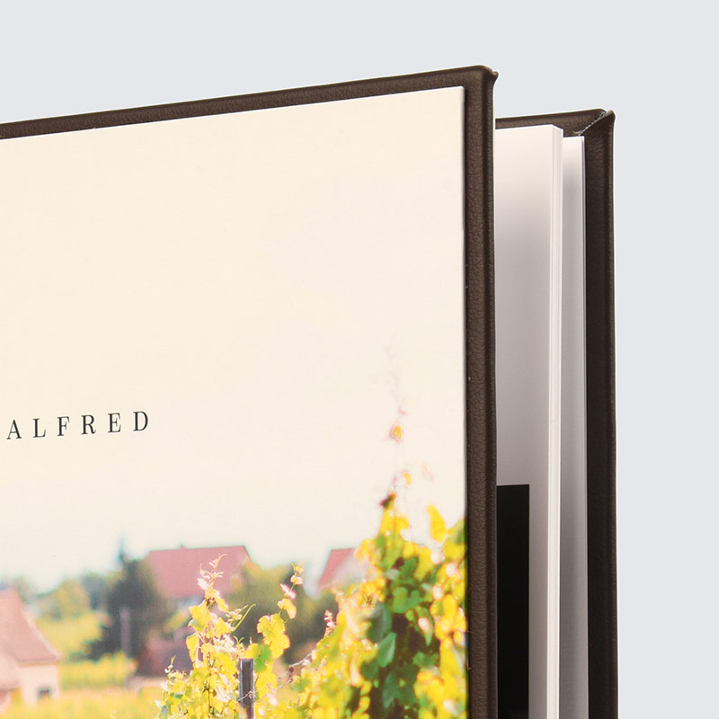 Kombinacija platna in plastificirane fotografije na prvi strani bo zadovoljila tudi tiste, ki imate radi klasično knjigoveško vezavo. Vaša fotografija na platnici je lahko mat, sijaj ali žametno plastificirana.